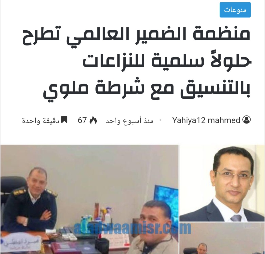 Under the patronage of Dr. Mina Youhanna, President of the Global Conscience Organization for Human Rights, legal advisor Ashraf Mubarak visited the Mallawi Police Department to discuss how to resolve disputes in the Zafarana facility in Mallawi Center in Minya Governorate and how to activate the role of social peace under the auspices of the Conscience Organization and resolve disputes through peaceful means.