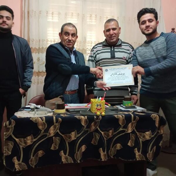 Under the patronage of Dr. Mina Youhanna, President of the Global Conscience Organization for Human Rights, Professor Ahmed Saad Khamis, the organization's general coordinator at the Edko Center, honored a group of young men and women from the Edko Microphone Band. This was a tribute to their participation in a fine arts exhibition held in one of the halls in Edko City. The general coordinator opened the exhibition, which featured a large collection of artworks by the team's members, who also boast talents in singing, poetry, art, and music. During this honor, the organization's general coordinator promised them that the organization is ready to adopt these talents from the Edko Center in Beheira Governorate. This work is part of the organization's policy and goal of encouraging talented young people in various fields and providing specialized academic support, which is in line with the state's policy of nurturing talented young people and developing their skills.