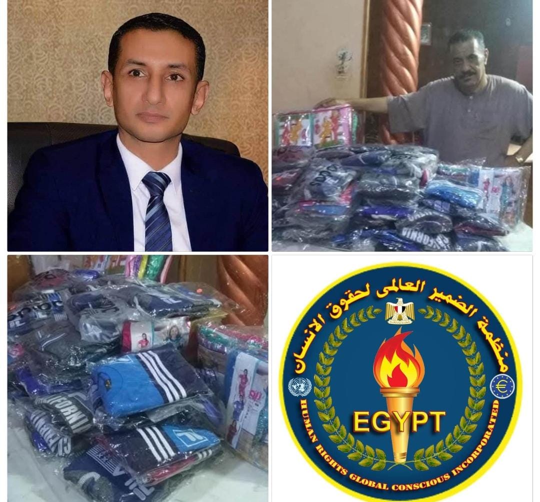 Under the patronage of Dr. Mina Youhanna, President of the Global Conscience Organization for Human Rights, Counselor Khalaf El-Sayed, Director of the organization’s branch in Sohag Governorate, donated clothes to a large number of children and families on the occasion of Eid al-Adha.