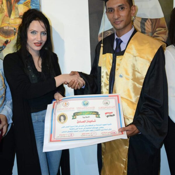 Dr. Mahmoud Tawfik, President of the International Academy of Sciences, awarded Dr. Mina Youhanna, President of the Conscience Global Organization for Human Rights, an honorary doctorate in humanities.